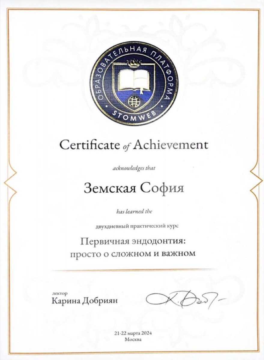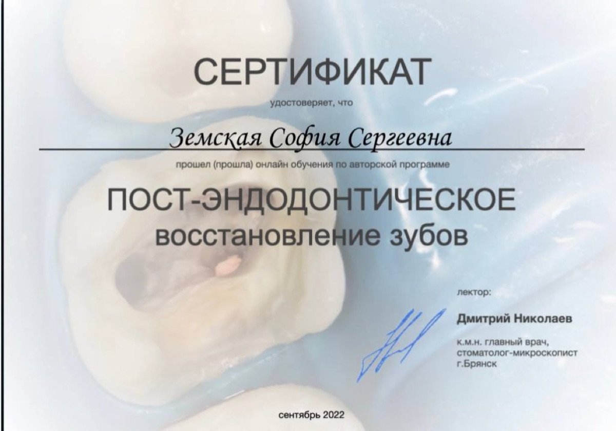 Сертификат: Пост-эндодонтическое восстановление зубов